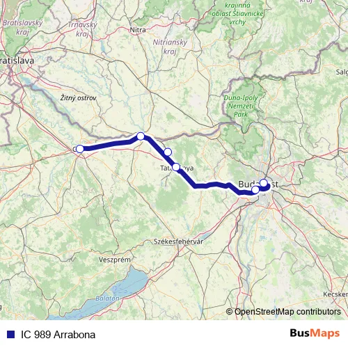 See why over 2 million users trust and consider busmaps.com as the best public transport website. busmaps gives you Budapest Rail Services suggested routes, real-time bus tracker, line route maps in Budapest, and helps to find the closest IC 989 Arrabona rail stops near you. No internet available? Download an offline PDF map and bus schedule for the IC 989 Arrabona rail to take on your trip.