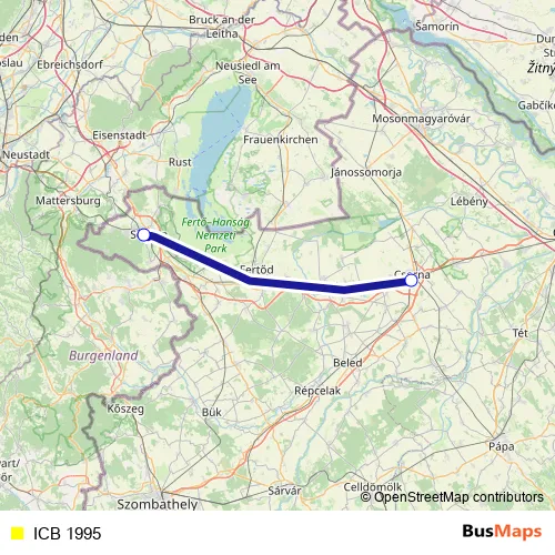 The first stop of the ICB 1995 bus route is Sopron and the last stop is Csorna. ICB 1995 is operational during everyday.