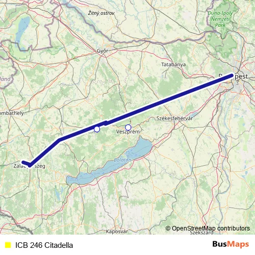 The first stop of the ICB 246 Citadella bus route is Veszprém and the last stop is Ajka. ICB 246 Citadella (ICB 246 Citadella) is operational during everyday.