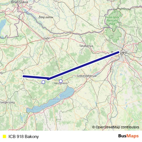Additional information: ICB 918 Bakony has 2 stops and the total trip duration for this route is approximately 0 minutes.
