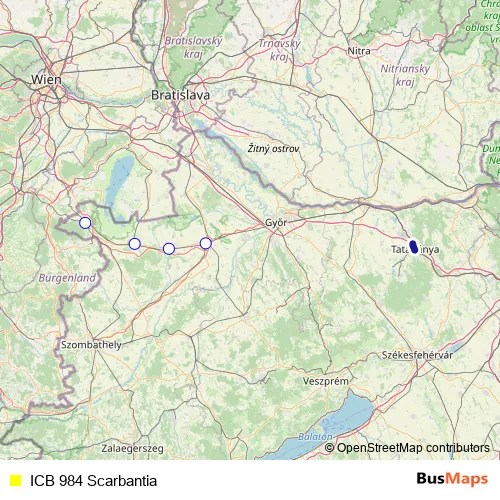 The first stop of the ICB 984 Scarbantia bus route is Csorna and the last stop is Sopron. ICB 984 Scarbantia (ICB 984 Scarbantia) is operational during everyday.