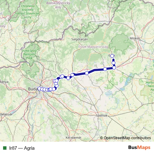 Rail Ir87 - Agria in Budapest: Stops & Timetable