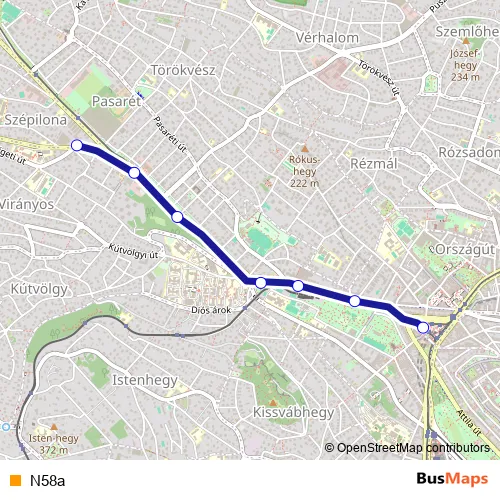 See why over 2 million users trust and consider busmaps.com as the best public transport website. busmaps gives you Budapest Trams suggested routes, real-time bus tracker, line route maps in Budapest, and helps to find the closest N58a tram stops near you. No internet available? Download an offline PDF map and bus schedule for the N58a tram to take on your trip.