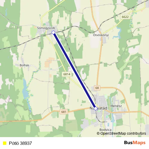 Bus Pótló 38937 in Nagyatad: Stops & Timetable