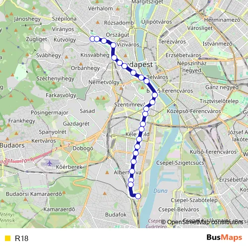 See why over 2 million users trust and consider busmaps.com as the best public transport website. busmaps gives you Budapest Trams suggested routes, real-time bus tracker, line route maps in Budapest, and helps to find the closest R18 tram stops near you. No internet available? Download an offline PDF map and bus schedule for the R18 tram to take on your trip.