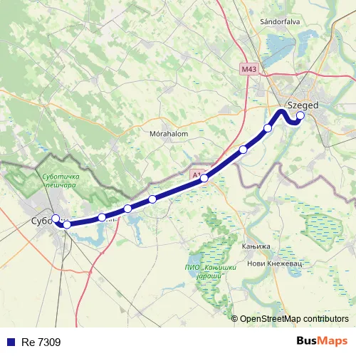 Парк Ференца Рајхла - Ђорђа Натошевића - Жељезничка станица - Каштељ пут - Жељезничка - Сегедински пут - Gárdonyi Géza utca - Indóház tér