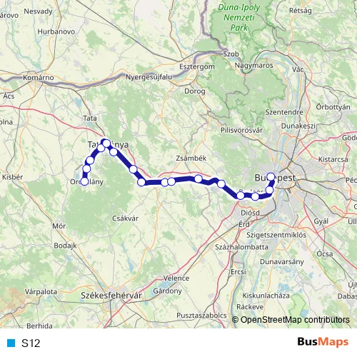 The first stop of the S12 rail route is Oroszlány and the last stop is Budapest-Déli. S12 is operational during everyday.