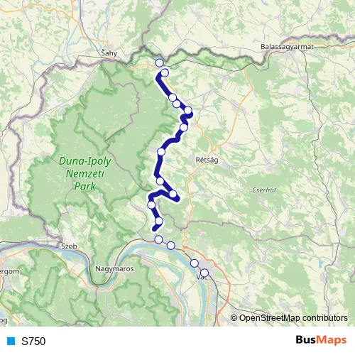 The first stop of the S750 rail route is Vác and the last stop is Drégelypalánk. S750 is operational during everyday.