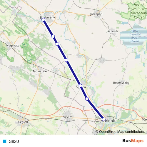 The first stop of the S820 rail route is Szolnok and the last stop is Jászberény. S820 is operational during on weekends.