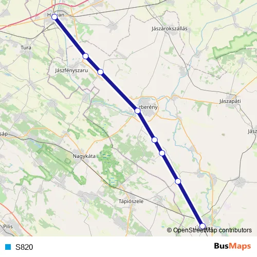 The first stop of the S820 rail route is Hatvan and the last stop is Újszász. S820 is operational during on weekends.