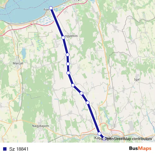The first stop of the Sz 18841 rail route is Fonyód and the last stop is Kaposvár. Sz 18841 is operational during on weekends.