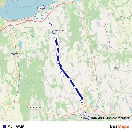 The first stop of the Sz 18846 rail route is Kaposvár and the last stop is Fonyód. Sz 18846 is operational during everyday.