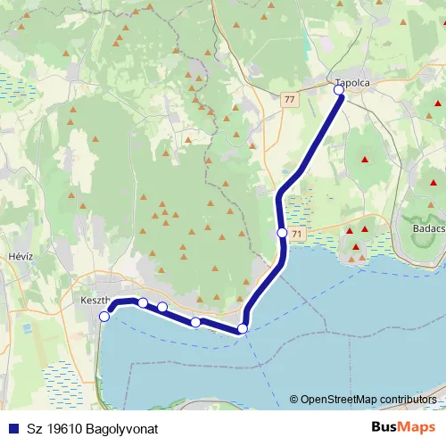 The first stop of the Sz 19610 Bagolyvonat rail route is Keszthely and the last stop is Tapolca. Sz 19610 Bagolyvonat (Sz 19610 Bagolyvonat) is operational during everyday.