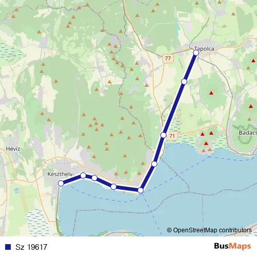 The first stop of the Sz 19617 rail route is Tapolca and the last stop is Keszthely. Sz 19617 is operational during everyday.