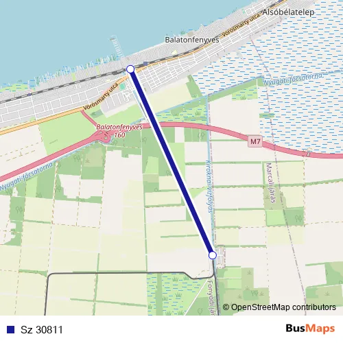 The first stop of the Sz 30811 rail route is Imremajor and the last stop is Balatonfenyves Gv. Sz 30811 is operational during everyday.