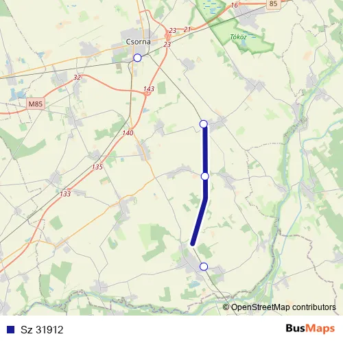The first stop of the Sz 31912 rail route is Szany-Rábaszentandrás and the last stop is Csorna. Sz 31912 is operational during everyday.