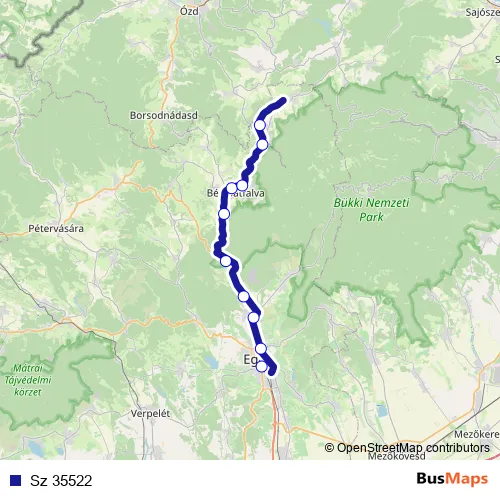 The first stop of the Sz 35522 rail route is Eger and the last stop is Szilvásvárad. Sz 35522 is operational during everyday.
