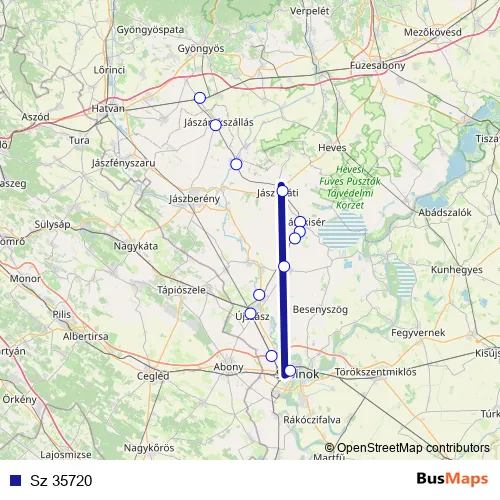 The first stop of the Sz 35720 rail route is Vámosgyörk and the last stop is Szolnok. Sz 35720 is operational during everyday.