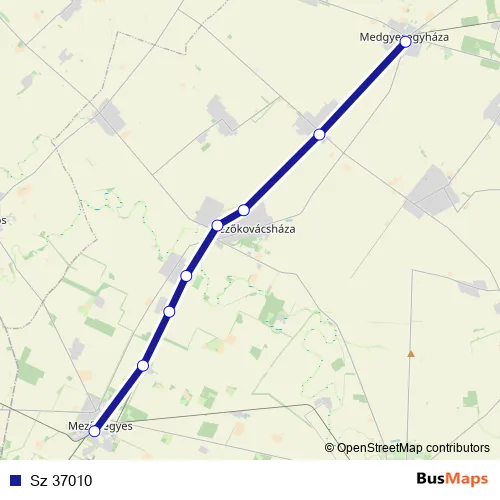 The first stop of the Sz 37010 rail route is Medgyesegyháza and the last stop is Mezőhegyes. Sz 37010 is operational during everyday.