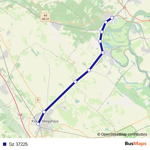 The first stop of the Sz 37225 rail route is Lakitelek and the last stop is Kiskunfélegyháza. Sz 37225 is operational during everyday.