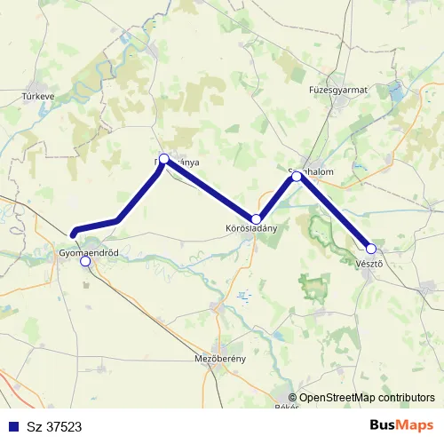 The first stop of the Sz 37523 rail route is Gyoma and the last stop is Vésztő. Sz 37523 is operational during everyday.