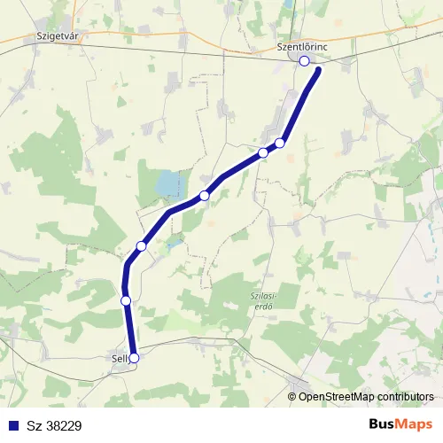 The first stop of the Sz 38229 rail route is Sellye and the last stop is Szentlőrinc. Sz 38229 is operational during everyday.