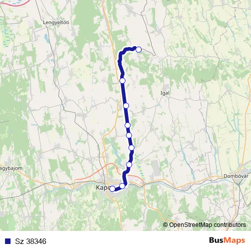 The first stop of the Sz 38346 rail route is Kaposvár and the last stop is Kisbárapáti. Sz 38346 is operational during everyday.