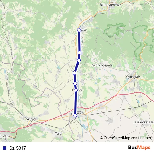The first stop of the Sz 5817 rail route is Pásztó and the last stop is Hatvan. Sz 5817 is operational during on weekdays.