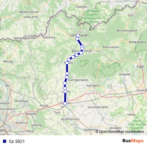 The first stop of the Sz 5821 rail route is Salgótarján külső and the last stop is Hatvan. Sz 5821 is operational during on weekdays.