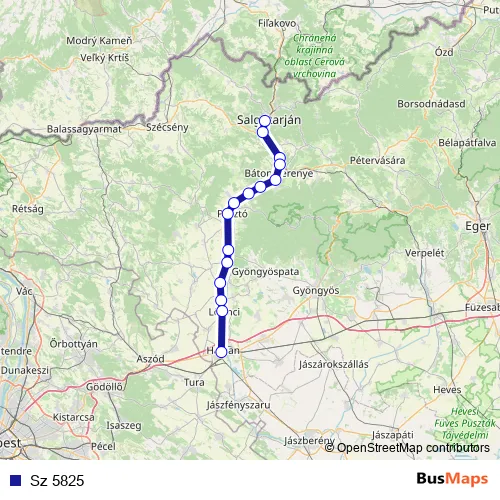 The first stop of the Sz 5825 rail route is Salgótarján külső and the last stop is Hatvan. Sz 5825 is operational during on weekdays.