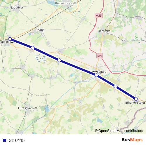 The first stop of the Sz 6415 rail route is Biharkeresztes and the last stop is Püspökladány. Sz 6415 is operational during everyday.