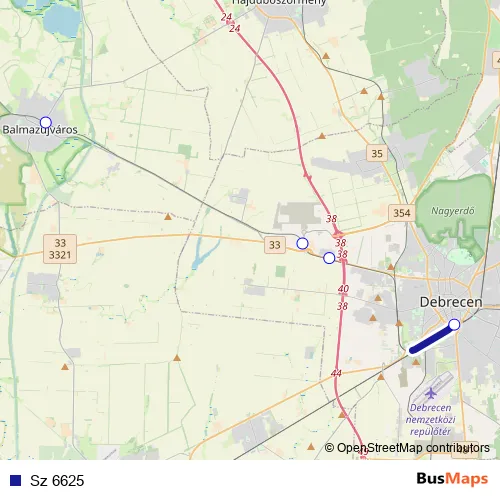 The first stop of the Sz 6625 rail route is Balmazújváros and the last stop is Debrecen. Sz 6625 is operational during on weekdays.