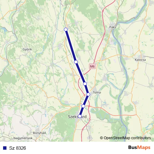 The first stop of the Sz 8326 rail route is Nagydorog and the last stop is Szekszárd. Sz 8326 is operational during on weekdays.
