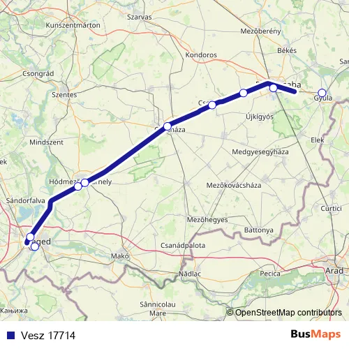 The first stop of the Vesz 17714 rail route is Szeged and the last stop is Gyula. Vesz 17714 is operational during everyday.