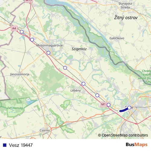 The first stop of the Vesz 19447 rail route is Hegyeshalom and the last stop is Győr. Vesz 19447 is operational during everyday.