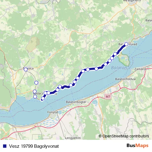 Additional information: Vesz 19799 Bagolyvonat has 20 stops and the total trip duration for this route is approximately 70 minutes.