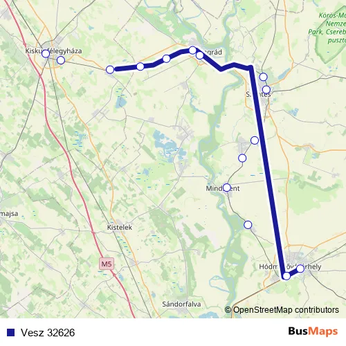 The first stop of the Vesz 32626 rail route is Kiskunfélegyháza and the last stop is Hódmezővásárhely. Vesz 32626 is operational during everyday.