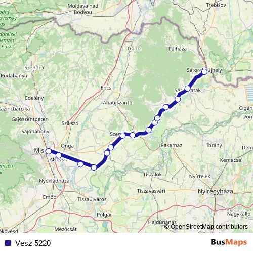 The first stop of the Vesz 5220 rail route is Miskolc-Tiszai and the last stop is Sátoraljaújhely. Vesz 5220 is operational during everyday.