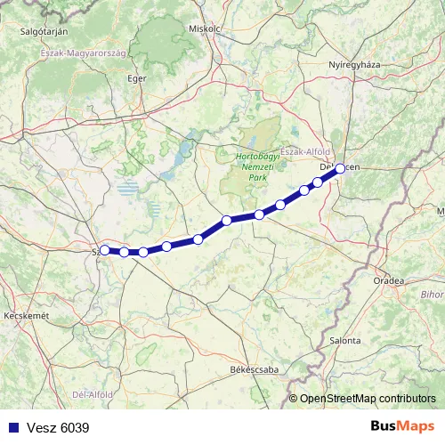 The first stop of the Vesz 6039 rail route is Debrecen and the last stop is Szolnok. Vesz 6039 is operational during on weekdays.