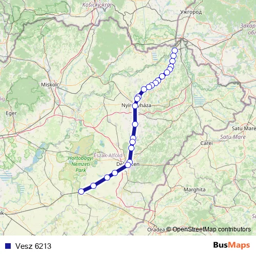 The first stop of the Vesz 6213 rail route is Tuzsér and the last stop is Püspökladány. Vesz 6213 is operational during on weekdays.