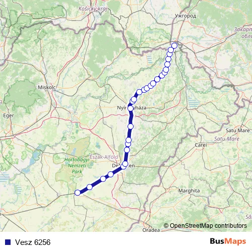 The first stop of the Vesz 6256 rail route is Püspökladány and the last stop is Záhony. Vesz 6256 is operational during on weekdays.