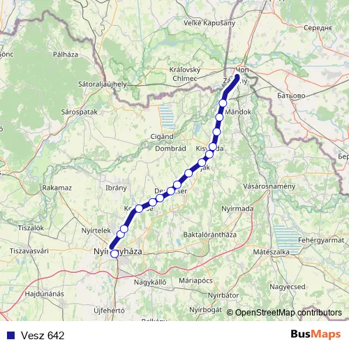 The first stop of the Vesz 642 rail route is Nyíregyháza and the last stop is Tuzsér. Vesz 642 is operational during on weekdays.