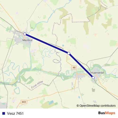 The first stop of the Vesz 7451 rail route is Gyoma and the last stop is Mezőtúr. Vesz 7451 is operational during everyday.