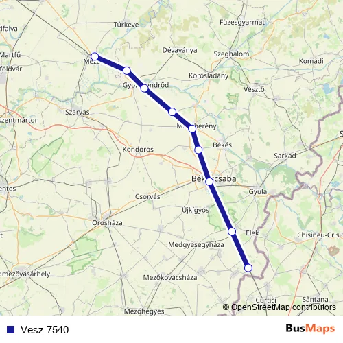 The first stop of the Vesz 7540 rail route is Mezőtúr and the last stop is Lőkösháza. Vesz 7540 is operational during everyday.