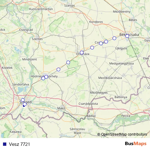 The first stop of the Vesz 7721 rail route is Békéscsaba and the last stop is Szeged. Vesz 7721 is operational during everyday.