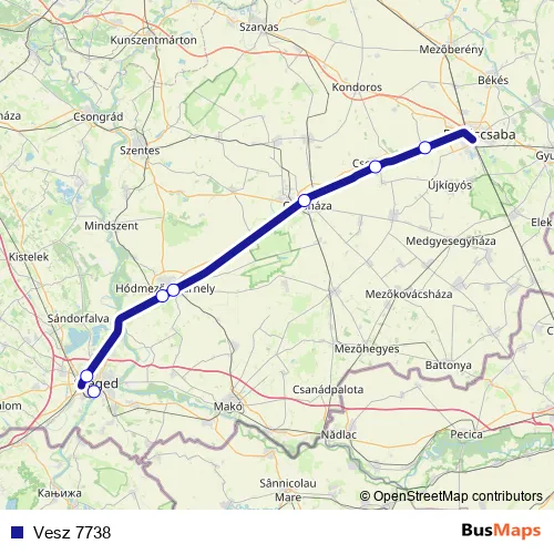 The first stop of the Vesz 7738 rail route is Szeged and the last stop is Telekgerendás. Vesz 7738 is operational during everyday.