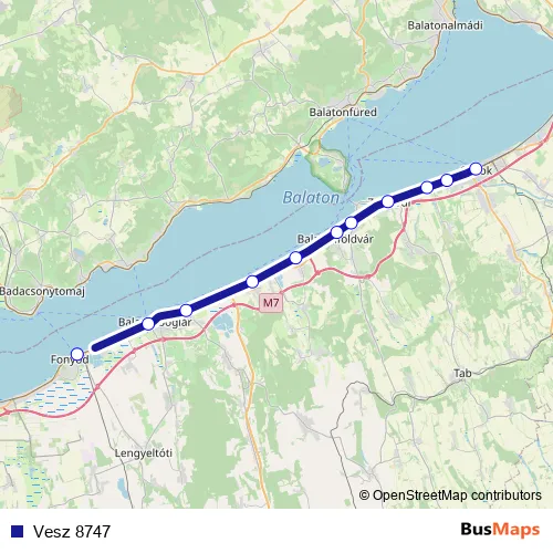 The first stop of the Vesz 8747 rail route is Fonyód and the last stop is Siófok. Vesz 8747 is operational during on weekdays.