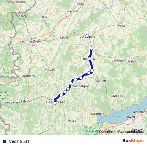 Juhász Gyula utca - Vasút utca - Fő utca - Széchenyi István utca - Rockwool út - Sümegi utca - Vasút utca