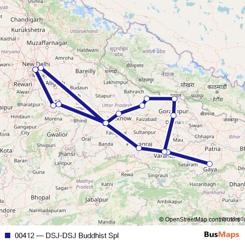 The first stop of the 00412 rail route is Delhi Safdarjung and the last stop is Delhi Safdarjung. 00412 (DSJ-DSJ Buddhist Spl) is operational during everyday.
