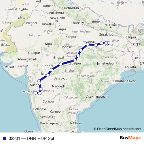 The first stop of the 03201 rail route is Danapur and the last stop is Hadapsar. 03201 (DNR HDP Spl) is operational during everyday.